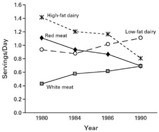 Courtesy of Hu FB, et al. “Trends in the Incidence of Coronary Heart Disease and Changes in Diet and Lifestyle in Women.” The New England Journal of Medicine, 2000.