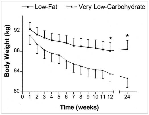 Courtesy of Brehm BJ, et al. “A randomized trial comparing a very low carbohydrate diet and a calorie-restricted low fat diet on body weight and cardiovascular risk factors in healthy women.” The Journal of Clinical Endocrinology & Metabolism, 2003.